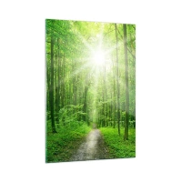 Cuadro sobre vidrio - Impresiones sobre Vidrio - Un camino en el bosque iluminado por los rayos del sol. - 50x70cm - Catedral verde - Decoración de pared moderna para salón y dormitorio ARTTOR