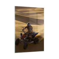 Cuadro sobre vidrio - Impresiones sobre Vidrio - ATV en acción en el desierto al atardecer - 50x70cm - Sobre las olas de la arena - Decoración de pared moderna para salón y dormitorio ARTTOR