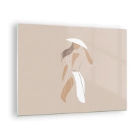 Cuadro sobre vidrio - Impresiones sobre Vidrio - Figura estilizada de una mujer con un sombrero blanco. - 70x50cm - La moda es alegría - Decoración de pared moderna para salón y dormitorio ARTTOR