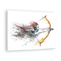 Cuadro sobre vidrio - Impresiones sobre Vidrio - Arquero en un entorno dinámico de acuarela - 70x50cm - Guerrero mítico con arco de fuego - Decoración de pared moderna para salón y dormitorio ARTTOR