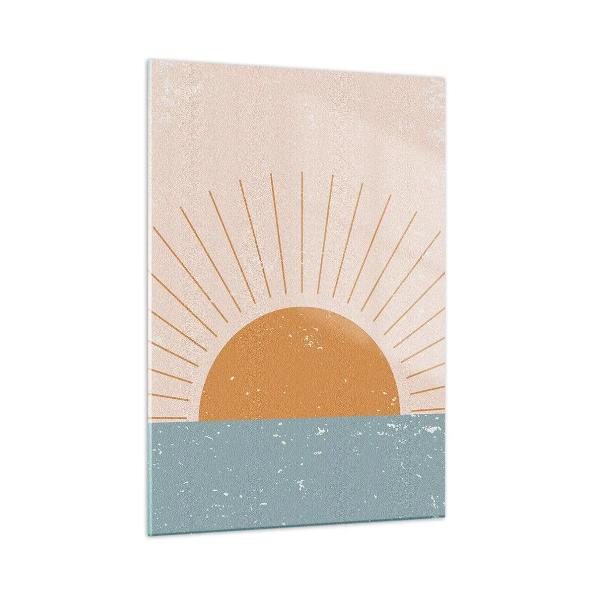 Cuadro sobre vidrio - Impresiones sobre Vidrio - Geometría beige con un semicírculo y un círculo sobre un fondo horizontal. - 50x70cm - Similitudes y diferencias - Decoración de pared moderna para salón y dormitorio ARTTOR