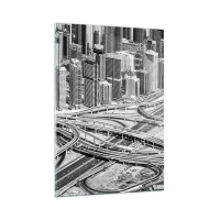 Cuadro sobre vidrio - Impresiones sobre Vidrio - Panorama en blanco y negro de la ciudad con un cruce de autopistas - 50x70cm - Dubái: la ciudad imposible - Decoración de pared moderna para salón y dormitorio ARTTOR