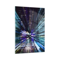 Cuadro sobre vidrio - Impresiones sobre Vidrio - Líneas de luz dinámicas con el telón de fondo de una ciudad nocturna. - 50x70cm - Cruzando el hiperespacio - Decoración de pared moderna para salón y dormitorio ARTTOR
