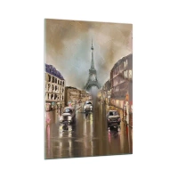 Cuadro sobre vidrio - Impresiones sobre Vidrio - Calle parisina al atardecer con vistas a la Torre Eiffel - 50x70cm - Solo ella importa - Decoración de pared moderna para salón y dormitorio ARTTOR