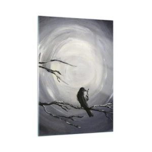 Cuadro sobre vidrio - Impresiones sobre Vidrio - Un cuervo posado en una rama con la luna llena como telón de fondo. - 50x70cm - La clave del misterio de la noche - Decoración de pared moderna para salón y dormitorio ARTTOR