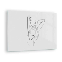 Cuadro sobre vidrio - Impresiones sobre Vidrio - Una silueta femenina dibujada con una sola línea sobre un fondo blanco. - 70x50cm - Realmente, tal y como eres - Decoración de pared moderna para salón y dormitorio ARTTOR