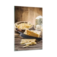 Cuadro sobre vidrio - Impresiones sobre Vidrio - Tabla de quesos con cuchillo sobre mesa rústica - 50x70cm - Degustación de quesos - Decoración de pared moderna para salón y dormitorio ARTTOR