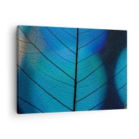 Cuadro sobre lienzo - Impresión de Imagen - Primer plano de una hoja azul con detalle de vena visible - 70x50cm - Construcción intrincada - Decoración de pared moderna para salón y dormitorio ARTTOR