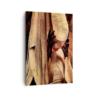 Cuadro sobre lienzo - Impresión de Imagen - Un par de figuras abstractas sobre un fondo de patrones dorados y un paisaje. - 50x70cm - Composición étnica en colores africanos - Decoración de pared moderna para salón y dormitorio ARTTOR