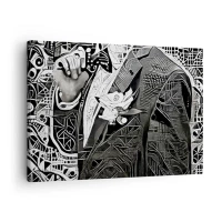 Cuadro sobre lienzo - Impresión de Imagen - Elegante abstracción de un hombre con traje en blanco y negro. - 70x50cm - Solo un hombre aparentemente gris - Decoración de pared moderna para salón y dormitorio ARTTOR