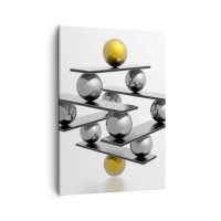 Cuadro sobre lienzo - Impresión de Imagen - Composición geométrica con bolas de metal y acento dorado. - 50x70cm - Balance de oro y plata - Decoración de pared moderna para salón y dormitorio ARTTOR
