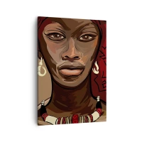 Cuadro sobre lienzo - Impresión de Imagen - Retrato de una mujer con un turbante rojo sobre un fondo beige - 50x70cm - Venus de ébano - Decoración de pared moderna para salón y dormitorio ARTTOR