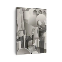 Cuadro sobre lienzo - Impresión de Imagen - Escena abstracta con músicos de jazz en tonos de gris. - 50x70cm - En el espacio de los sonidos - Decoración de pared moderna para salón y dormitorio ARTTOR