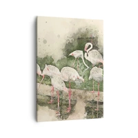 Cuadro sobre lienzo - Impresión de Imagen - Flamencos en su entorno natural en estilo acuarela. - 50x70cm - Un sueño exótico - Decoración de pared moderna para salón y dormitorio ARTTOR