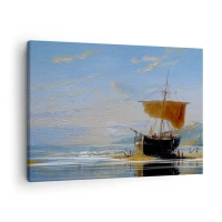 Cuadro sobre lienzo - Impresión de Imagen - Un barco en la orilla del mar en un día soleado. - 70x50cm - Agua, tierra, aire - Decoración de pared moderna para salón y dormitorio ARTTOR