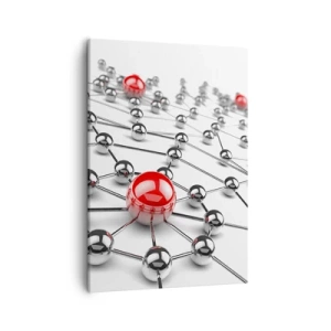 Cuadro sobre lienzo - Impresión de Imagen - Una red de bolas metálicas con acentos rojos. - 50x70cm - Una red plateada - Decoración de pared moderna para salón y dormitorio ARTTOR