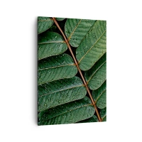 Cuadro sobre lienzo - Impresión de Imagen - Fotografía macro de hojas verdes con gotas de rocío. - 50x70cm - En un ritmo verde - Decoración de pared moderna para salón y dormitorio ARTTOR