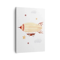 Cuadro sobre lienzo - Impresión de Imagen - Un dirigible pintado a mano con un fondo de estrellas. - 50x70cm - Dirigible - Decoración de pared moderna para salón y dormitorio ARTTOR