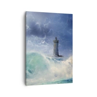 Cuadro sobre lienzo - Impresión de Imagen - Un faro rodeado de fuertes olas y nubes. - 50x70cm - En guardia contra los elementos - Decoración de pared moderna para salón y dormitorio ARTTOR