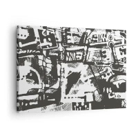 Cuadro sobre lienzo - Impresión de Imagen - Patrón retro monocromático abstracto - 70x50cm - ¿Orden o caos? - Decoración de pared moderna para salón y dormitorio ARTTOR