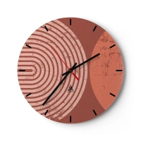 Reloj de pared - Reloj de vidrio - Geometría de círculos en tonos terracota y rosa. - 30x30cm - Estrecha relación - Decoración de pared moderna para salón, cocina y dormitorio ARTTOR