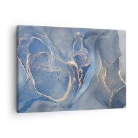 Cuadro sobre lienzo - Impresión de Imagen - Patrones abstractos azules con acentos dorados - 70x50cm - Polvo de oro - Decoración de pared moderna para salón y dormitorio ARTTOR