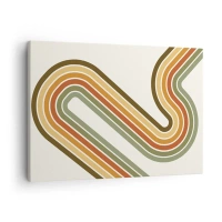 Cuadro sobre lienzo - Impresión de Imagen - Patrón geométrico en tonos verde, naranja y beige sobre un fondo claro. - 70x50cm - Zigzagueando hasta su destino - Decoración de pared moderna para salón y dormitorio ARTTOR