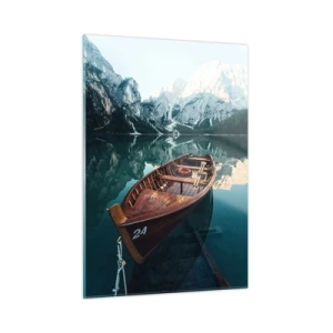 Cuadro sobre vidrio - Impresiones sobre Vidrio - Un puerto pintoresco con veleros y casas coloridas. - 50x70cm - Un refugio romántico - Decoración de pared moderna para salón y dormitorio ARTTOR