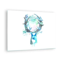 Cuadro sobre vidrio - Impresiones sobre Vidrio - Ciervo con corona de flores y plumas. - 70x50cm - Guía del alma - gentil, inocente - Decoración de pared moderna para salón y dormitorio ARTTOR
