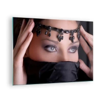 Cuadro sobre vidrio - Impresiones sobre Vidrio - Un rostro de mujer con una tiara adornada y una mirada intensa. - 70x50cm - Tentador misterio oriental - Decoración de pared moderna para salón y dormitorio ARTTOR