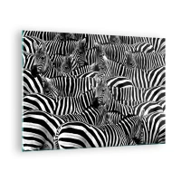 Cuadro sobre vidrio - Impresiones sobre Vidrio - Una manada de cebras en monocromo - 70x50cm - Retrato a rayas - Decoración de pared moderna para salón y dormitorio ARTTOR
