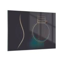 Cuadro sobre vidrio - Impresiones sobre Vidrio - Primer plano de una guitarra acústica negra con detalle de cuerdas. - 70x50cm - Un momento antes de que suene - Decoración de pared moderna para salón y dormitorio ARTTOR