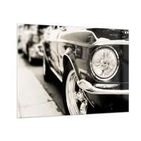 Cuadro sobre vidrio - Impresiones sobre Vidrio - Primer plano del frontal de un coche clásico en sepia. - 70x50cm - Brillo perdurable - Decoración de pared moderna para salón y dormitorio ARTTOR