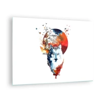 Cuadro sobre vidrio - Impresiones sobre Vidrio - Ilustración de un lobo con una luna llena al fondo. - 70x50cm - El acecho nocturno - Decoración de pared moderna para salón y dormitorio ARTTOR