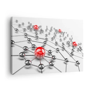 Cuadro sobre lienzo - Impresión de Imagen - Una red de bolas metálicas con acentos rojos. - 70x50cm - Una red plateada - Decoración de pared moderna para salón y dormitorio ARTTOR