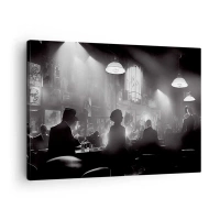 Cuadro sobre lienzo - Impresión de Imagen - Escena de clubes nocturnos de jazz en blanco y negro - 70x50cm - En clave de jazz - Decoración de pared moderna para salón y dormitorio ARTTOR