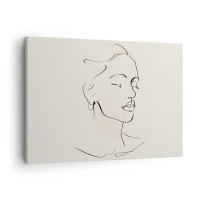 Cuadro sobre lienzo - Impresión de Imagen - Un delicado boceto del rostro de una mujer sobre un fondo claro. - 70x50cm - Líneas que muestran seguridad - Decoración de pared moderna para salón y dormitorio ARTTOR