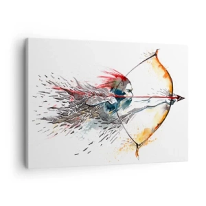 Cuadro sobre lienzo - Impresión de Imagen - Pintura dinámica de acuarela de un guerrero con arco y flecha. - 70x50cm - Guerrero mítico con arco de fuego - Decoración de pared moderna para salón y dormitorio ARTTOR