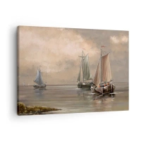 Cuadro sobre lienzo - Impresión de Imagen - Veleros en un mar en calma en un entorno pastel - 70x50cm - El regreso de los marineros - Decoración de pared moderna para salón y dormitorio ARTTOR