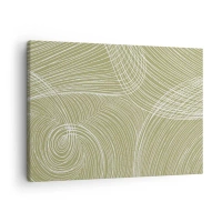 Cuadro sobre lienzo - Impresión de Imagen - Líneas verdes y blancas en una composición abstracta. - 70x50cm - Abstracción intrincada en blanco - Decoración de pared moderna para salón y dormitorio ARTTOR