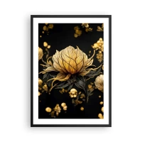 Póster en marco negro - Una flor dorada sobre un fondo negro en una elegante composición. - 50x70cm - Sutil fragilidad - Decoración de pared moderna para salón y dormitorio ARTTOR