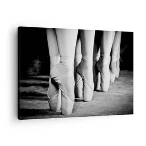 Cuadro sobre lienzo - Impresión de Imagen - Fotografía en blanco y negro de las zapatillas de ballet de una bailarina. - 70x50cm - En conjunto y al unísono - Decoración de pared moderna para salón y dormitorio ARTTOR