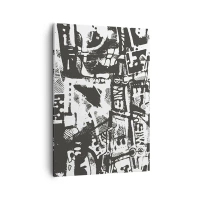 Cuadro sobre lienzo - Impresión de Imagen - Patrón retro monocromático abstracto - 50x70cm - ¿Orden o caos? - Decoración de pared moderna para salón y dormitorio ARTTOR