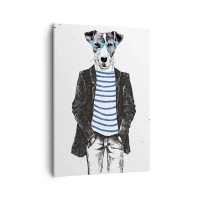 Cuadro sobre lienzo - Impresión de Imagen - Retrato de un perro con gafas y camisa de marinero en estilo humorístico. - 50x70cm - El encanto del perro - Decoración de pared moderna para salón y dormitorio ARTTOR
