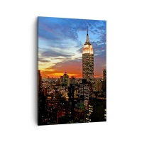Cuadro sobre lienzo - Impresión de Imagen - Panorama de la ciudad con rascacielos iluminados al atardecer - 50x70cm - Una luminosa noche americana - Decoración de pared moderna para salón y dormitorio ARTTOR