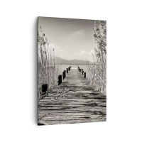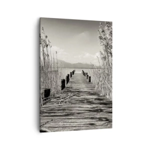 Cuadro sobre lienzo - Impresión de Imagen - Un embarcadero de madera entre hierbas altas sobre un lago de tonos sepia. - 50x70cm - En la quietud de los juncos - Decoración de pared moderna para salón y dormitorio ARTTOR