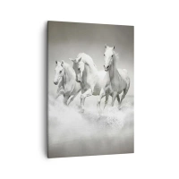 Cuadro sobre lienzo - Impresión de Imagen - Tres caballos blancos galopando por el agua - 50x70cm - Locura blanca - Decoración de pared moderna para salón y dormitorio ARTTOR
