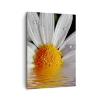 Cuadro sobre lienzo - Impresión de Imagen - Una margarita blanca con gotas de agua inmersas en un reflejo de agua. - 50x70cm - El sol naciente de una margarita - Decoración de pared moderna para salón y dormitorio ARTTOR