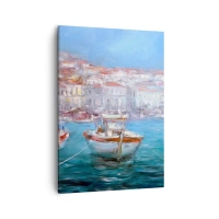 Cuadro sobre lienzo - Impresión de Imagen - Barcos en una pintoresca bahía italiana - 50x70cm - Bahía italiana - Decoración de pared moderna para salón y dormitorio ARTTOR