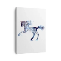 Cuadro sobre lienzo - Impresión de Imagen - Gráfico artístico de caballo con motivos de árboles y pájaros. - 50x70cm - El bosque en movimiento - Decoración de pared moderna para salón y dormitorio ARTTOR